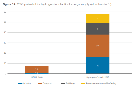 Studie iniciativy Hydrogen Council předpovídá v roce 2050 globální poptávku po vodíku 78 exajoulů, což by odpovídalo přibližně 18 % celkové poptávky po energii.