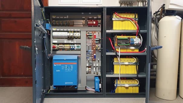 Ked sa pouziva 48V system , tak sa nepracuje s napetim 600v, panely sa poskladaju na 120V napriklad. V jednej zakazke sme pouzili v cisto ostrovnom systeme, 15 panelov 370Wp , 2x Victron Multiplus 5KW, BYD Baterie LVS 20KW (5ks 4kW moduly), regulator a nabijac Victron MPPT 150/70, A GX Color Control na vzdialenu spravu.