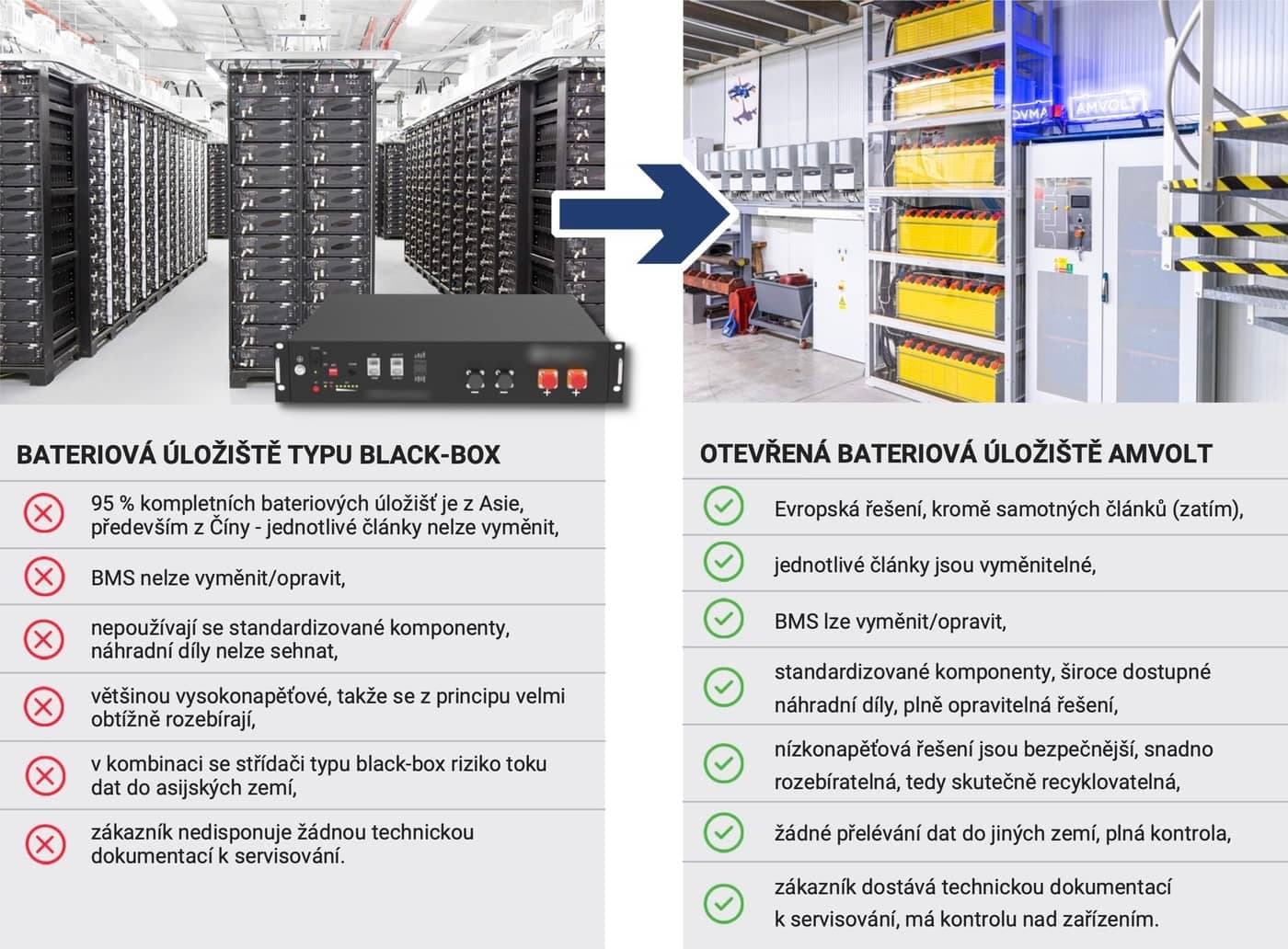 Jako určitou nevýhodu AMVOLT LV Modulů v porovnání s konkurencí vnímáme nutnost časově delší instalace na místě z důvodu, že se nejedná o sériovou výrobu a úložiště je tak vždy kompletováno až přímo na místě realizace.
