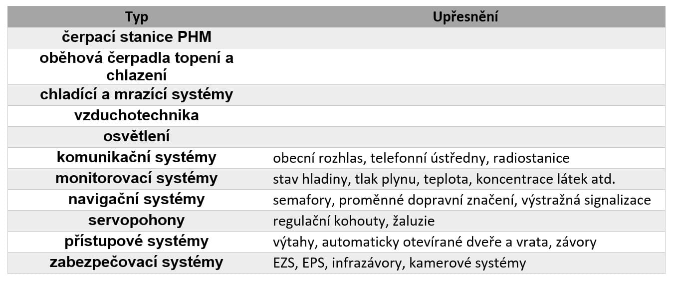 Přehled dalších prvků kritické infrastruktury je zachycen v následující tabulce: