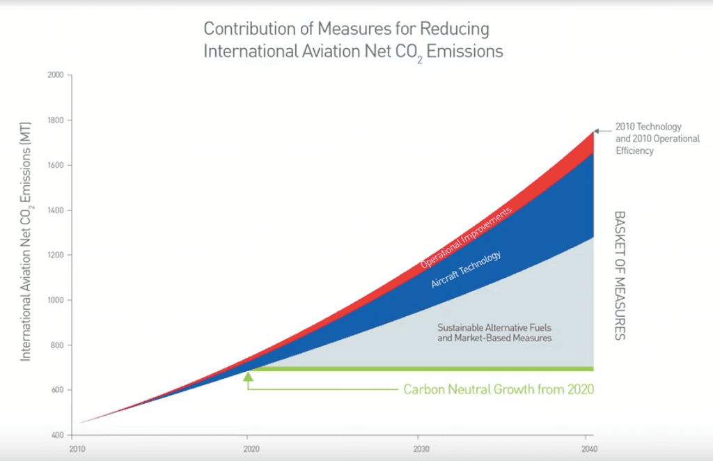 V roce 2020 mají emise z letecké dopravy být o 70 % vyšší než v roce 2005. Po roce 2050, jak předpovídá ICAO, až o 300 až 700 %. I proto organizace o mechanismech redukce znečištění v poslední době stále intenzivněji jednala. Přechod od slibů k činům nyní slibuje mechanismus CORSIA, přijatý na 39. valném shromáždění ICAO v říjnu 2016.
