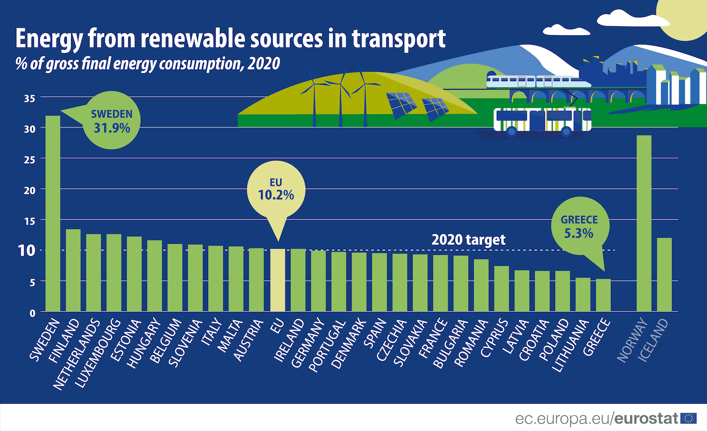 Statistický úřad Evropské unie minulý týden oznámil, že EU splnila cíl 10% podílu obnovitelné energie v dopravě do roku 2020. Podíl zelené energie v odvětví mobility v EU zahrnuje kromě kapalných biopaliv i elektřinu z obnovitelných zdrojů a biometan.