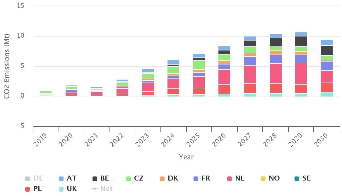S odklonem od uhlí v Německu by v období let 2019-2030 dle ICIS došlo ke snížení emisí oxidu uhličitého o přibližně 300 milionů tun. Tento předpoklad uvažuje pokles emisí CO2 v Německu o 371 milionů tun kompenzovaný nárůstem emisí v sousedních zemích. Většinu tohoto nárůstu zajišťuje vyšší výroba v Nizozemsku (+22 mil. tun CO2), Polsku (+11 mil. tun CO2) a Francii (+ 9 mil. tun CO2).