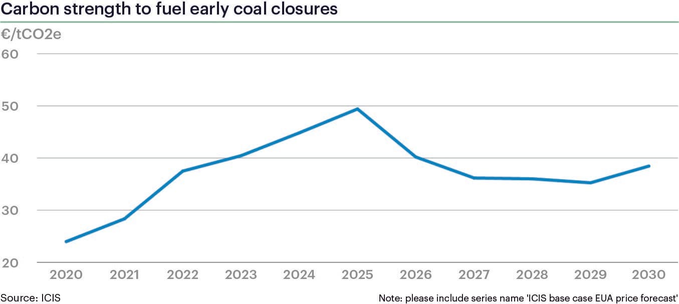 Analytici ICIS v základním scénáři očekávají, že ceny evropských emisních povolenek (EUA) vzrostou již v roce 2023 nad 40 EUR/tCO2e. To by znamenalo, že současná nižší ziskovost uhelných elektráren by se nezvyšovala ani v případě zotavení cen plynu z letošních rekordních minim.
