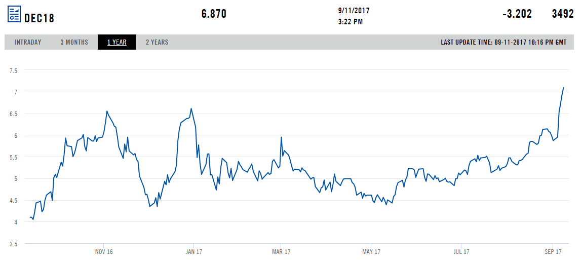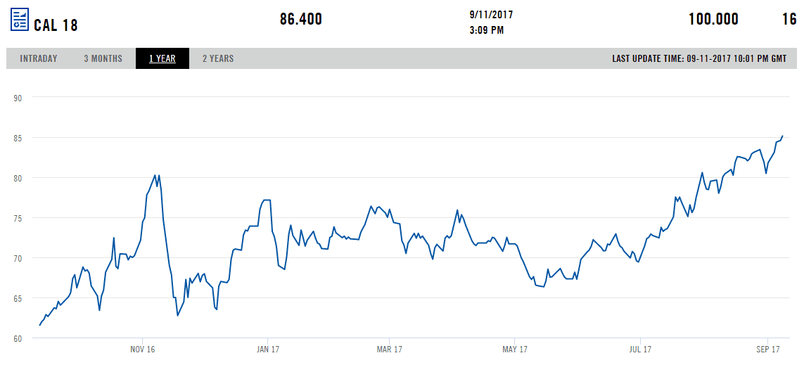 Ceny uhlí s dodávkou na následující kalendářní rok se pohybují na svých dosavadních letošních maximech. Cena energetického uhlí z australského přístavu v Newcastlu za poslední 2 měsíce vzrostla ze 70 USD/t na 85 USD/t. Podobně je na tom cena uhlí pro rok 2018 z přístavu v Rotterdamu, která překročila hranici 80 USD/t.