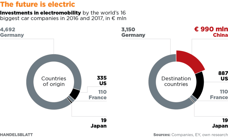 Volkswagen, BMW a výrobce Mercedesů, Daimler, zvýšili své investice do elektromobility. Celkově německý automobilový průmysl investoval v letech 2016 a 2017 do úpravy svých výrobních závodů 4,7 miliardy euro, více než všichni ostatní velcí konkurenti dohromady, uvádí analýza poradenské společnosti EY. Z této sumy bylo 3,1 miliardy euro investováno v Německu, což je třikrát více než v Číně a USA.
