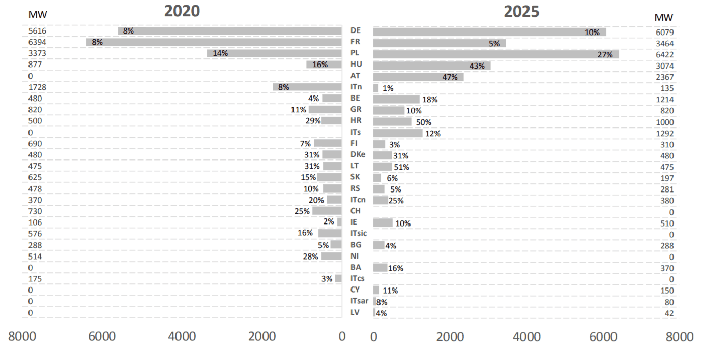 Kromě toho mohou spolehlivostní rizika dodávky elektřiny nastat i v kontinentální Evropě, ve Francii a Polsku a v Itálii, kde index spolehlivosti LOLE dosahuje přibližně 35 hodin za rok.
