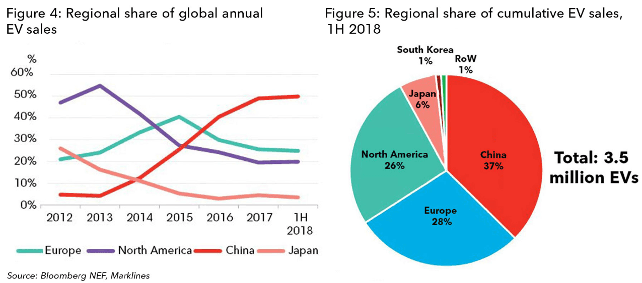 Na konci června 2018 bylo prodaných více než 3,5 milionů osobních elektromobilů a 421 tisíc elektrických autobusů. Významný podíl na těchto číslech má Čína. V Číně se prodalo 37 % osobních elektromobilů prodaných ve světě od roku 2011 a 99 % elektrických autobusů.