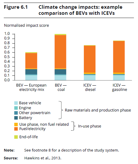 Zpráva ovšem potvrzuje, že při současném energetickém mixu EU a při zohlednění emisí během celého životního cyklu automobilů jsou emise elektromobilů v EU nižší o 17–30 %. Pokud by uhlíková intenzita ekonomiky Unie nadále klesala, jak se předpokládá, tak by emise mohly být nižší až o 73 % do 2050.