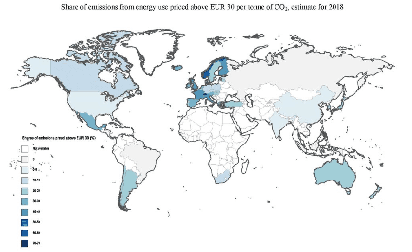 Organizace pro hospodářskou spolupráci a rozvoj (OECD) upozorňuje ve své nejnovější zprávě na nedostatečnost opatření většiny zemí pro dosažení cílů Pařížské dohody. OECD v reportu srovnává především výši zpoplatnění emisí uhlíku v jednotlivých zemích, které sdružuje (tedy především státy severní Ameriky, západní a středí Evropy, Austrálii či Japonsko), přičemž shledává, že jen několik málo zemí má výši ceny uhlíku nastavenou efektivně.