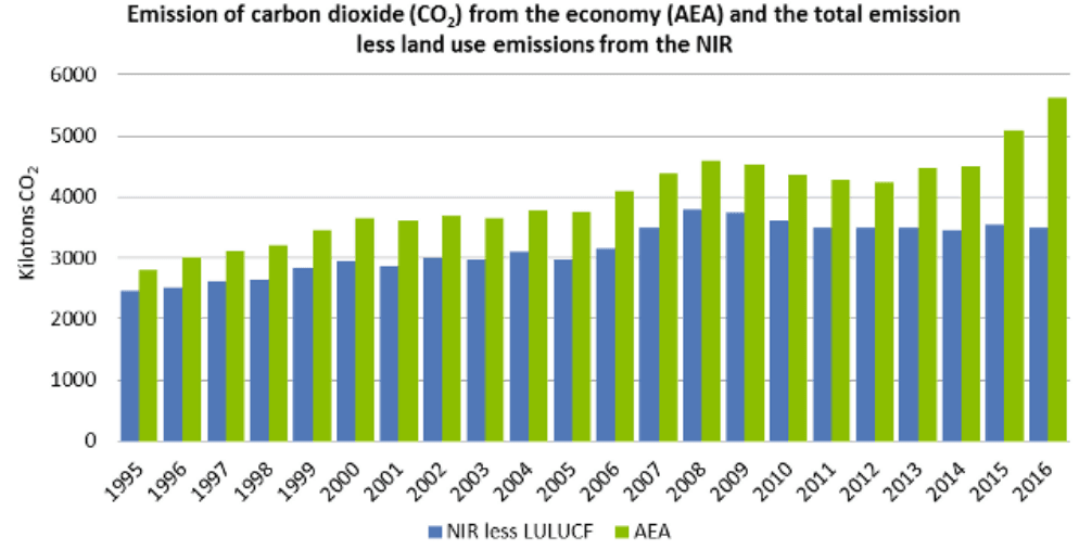Islandský statistický úřad užívá pro výpočet emisí jinou metodiku než například mechanismus úmluvy UNFCCC pod organizací OSN. Do celkového čísla promítá takzvaný Air Emissions Account aspekt a tedy propočítává i vliv odvětví letectví, lodní dopravy a přeshraniční spotřebu energie. Naproti tomu OSN používá metodiku, která bere na vědomí emise vzešlé z území bez ohledu na další aspekty vzniku znečištění.