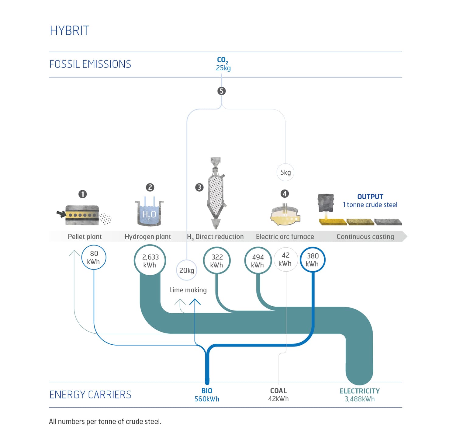 Tento objem přitom činí přibližně pětinu celkových zpracovatelských kapacit v závodech společnosti LKAB v Malmbergetu a přibližně polovinu výrobních kapacit vysokých pecí společnosti SAAB ve městě Luleå. Cílem projektu je realizace prvního hodnotového řetězce pro „nefosilní“ ocel na světě už v roce 2026.