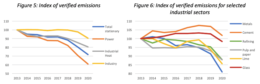 Zpráva, mimo jiné, shrnuje informace o poklesu emisí skleníkových plynů v rámci EU ETS. Předběžné údaje zveřejněné v dubnu Evropskou komisí ukazují, že emise ze stacionárních zdrojů v roce 2020 prudce poklesly, a to o odhadovaných 10,6%.