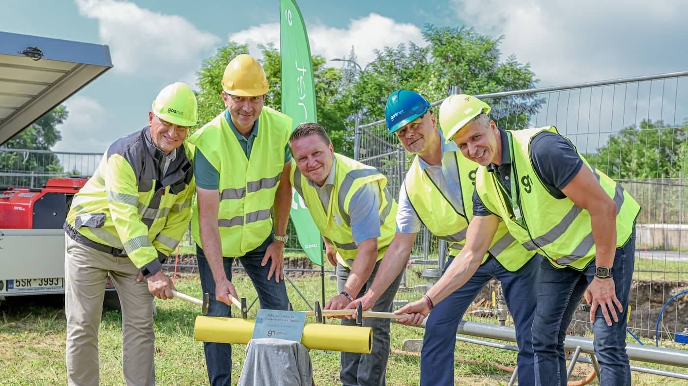 Poklepání a přípitek. Výstavbu polygonu odstartovali v Pardubicích provozní ředitel GasNetu Petr Koutný a ředitel výstavby Pavel Komsa. Pomohli jim s tím ředitel speciálních prací GasNetu Petr Zajíček, vedoucí regionální oblasti Čechy 3 Jakub Neterda a Zdeněk Sitař jako zástupce BOZP. A mimochodem – protože jsou plynaři, neklepali na základní kámen, ale na „základní plynovod“. Pět kladívek proto přímo na stavbě rozezvučelo žlutou ocelovou trubku a odstartovalo jedinečnou stavbu celého českého plynárenství.