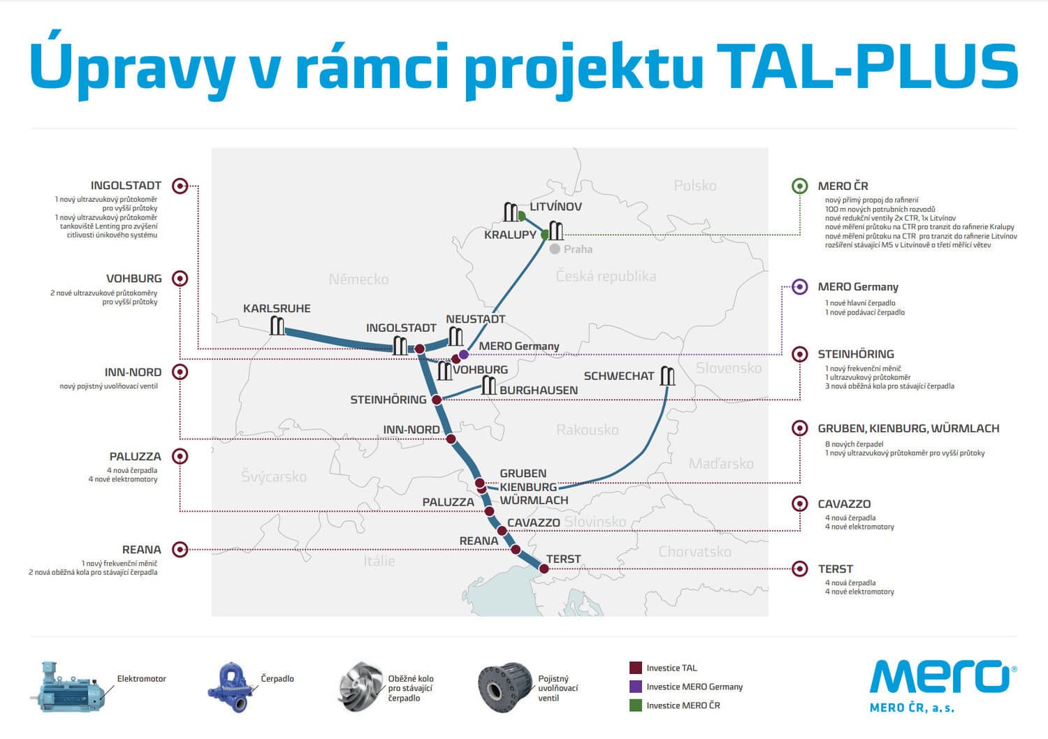 Na konci července společnost MERO informovala o podepsání smlouvy na rozšíření kapacity ropovodu TAL. Projekt TAL-PLUS, který by měl umožnit České republice dovážet až o čtyři miliony tun ropy ročně více ze západní Evropy, postupuje podle harmonogramu. Na rakouském a italském úseku ropovodu TAL, který je propojen s ropovodem Ingolstadt – Kralupy nad Vltavou – Litvínov (IKL) na české straně, se provádějí technické modifikace, které zvýší jeho propustnost. Nová čerpadla budou mít dostatečný výkon pro splnění nových požadavků.