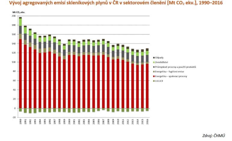 Emise skleníkových plynů z dopravy v letech 2000-2016 narostly o 54,6 %. Rostou rovněž emise ze zemědělství (2010-2016 o 14,9 %) a odpadů (o 44,3 % za období 2000-2016). Ve srovnání s ostatními zeměmi EU má Česko nadprůměrné emise skleníkových plynů na obyvatele (o 46 % vyšší než je průměr EU) a rovněž vysokou emisní náročnost ekonomiky (o 66,5 % vyšší než evropský průměr) a to i přesto, že se energetická náročnost v ČR od roku 2000 snížila o 33,6 %. Důvodem je struktura tvorby HDP v Česku, kdy se na hospodářství velkým dílem podílí průmysl.
