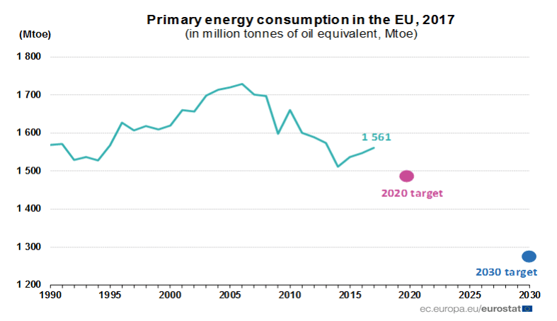V roce 2017 byla spotřeba primární energie v EU 5,3 % nad cílem pro rok 2020 a konečná spotřeba energie potom 3,3 % nad tímto cílem.