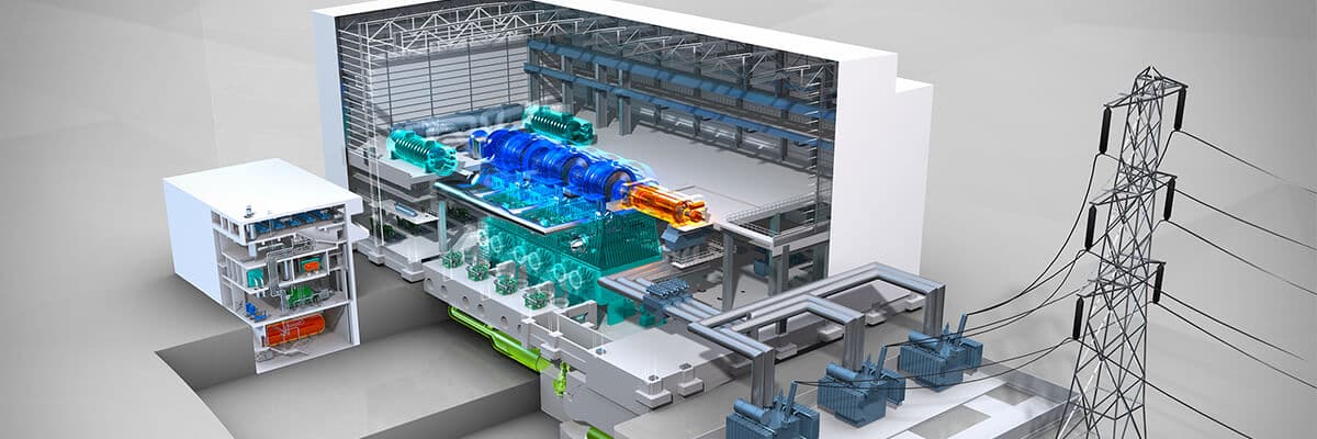 Turbínový ostrov pro jadernou elektrárnu; Zdroj: GE Power