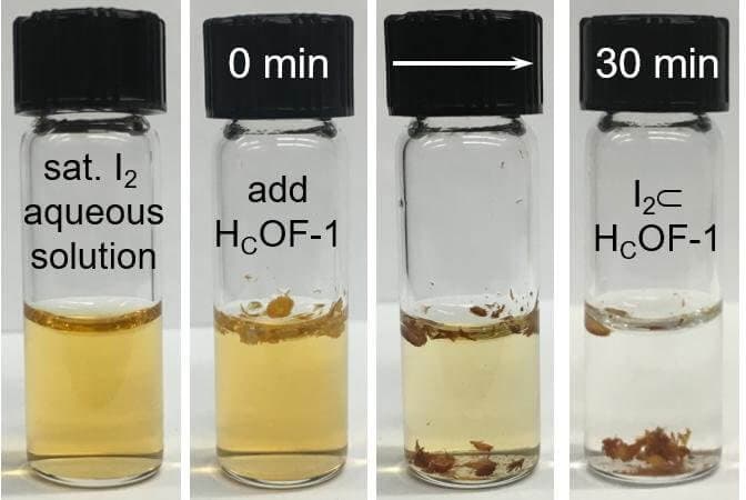 Výzkumníci z Dartmouth College (Hanover, USA) vyvinuli nový materiál, který poprvé odstranil jód z vody. Tento průlom může být klíčem při čištění radioaktivní vody v jaderných reaktorech a po jaderných haváriích jako například po nehodě v JE Fukušima z roku 2011.