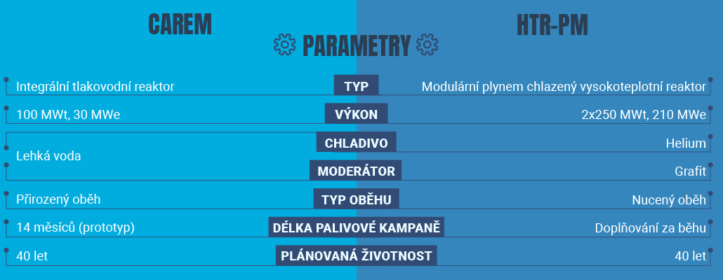 Základní parametry malých modulární reaktorů CAREM a HTR-PM