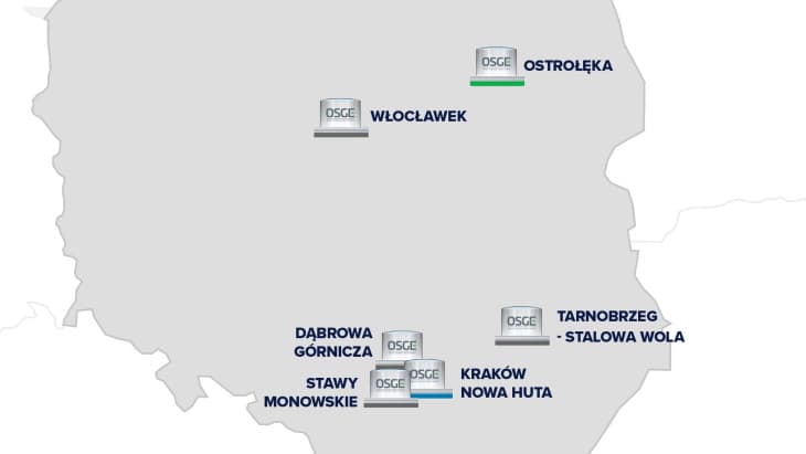 Potenciální možnosti výstavby nových malých modulárních reaktorů zahrnují lokality Ostrołęka, Włocławek, Stawy Monowskie, Dąbrowa Górnicza, Nowa Huta, ekonomická zóna Tarnobrzeg a Varšava. Tyto lokality mimo jiné hostí velké průmyslové závody a jsou vhodné pro zřízení systému centrálního vytápění. Seznam lokalit, u kterých nyní OSGE žádá zásadní rozhodnutí, nezahrnuje lokalitu Varšava.