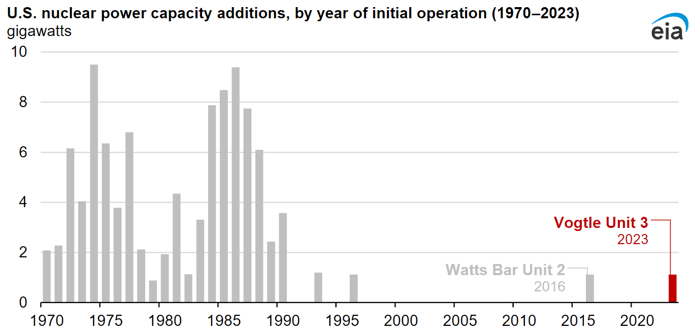 Sesterský blok Vogtle 3 zahájil komerční provoz v červenci 2023, což společně s Vogtle 4 představuje nejnovější přírůstky do americké jaderné energetiky. Tyto projekty ilustrují snahu o modernizaci a rozvoj jaderné infrastruktury s využitím pokročilých technologií a bezpečnostních standardů.
