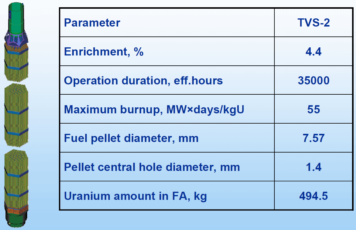 Dva experimentální palivové soubory, vyrobené v závodě na chemické koncentráty v Novosibirsku, který je dceřinou společností TVELu, jsou navrženy podle palivových proutků stávajících reaktorů typu VVER ve čtyřech různých kombinacích materiálů pokrytí paliva a palivové matrice.