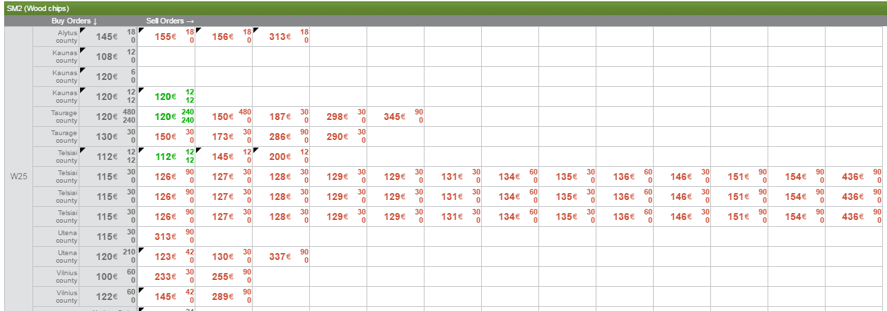 a) Okres Alytus (horní řádek) je sice dole na jihu země, ale že by 145 EUR nebylo dost lukrativních? V jiných okresech stačí pro úspěšnou poptávku (vyznačeno zeleně) i jen 120 EUR nebo dokonce 112 EUR.