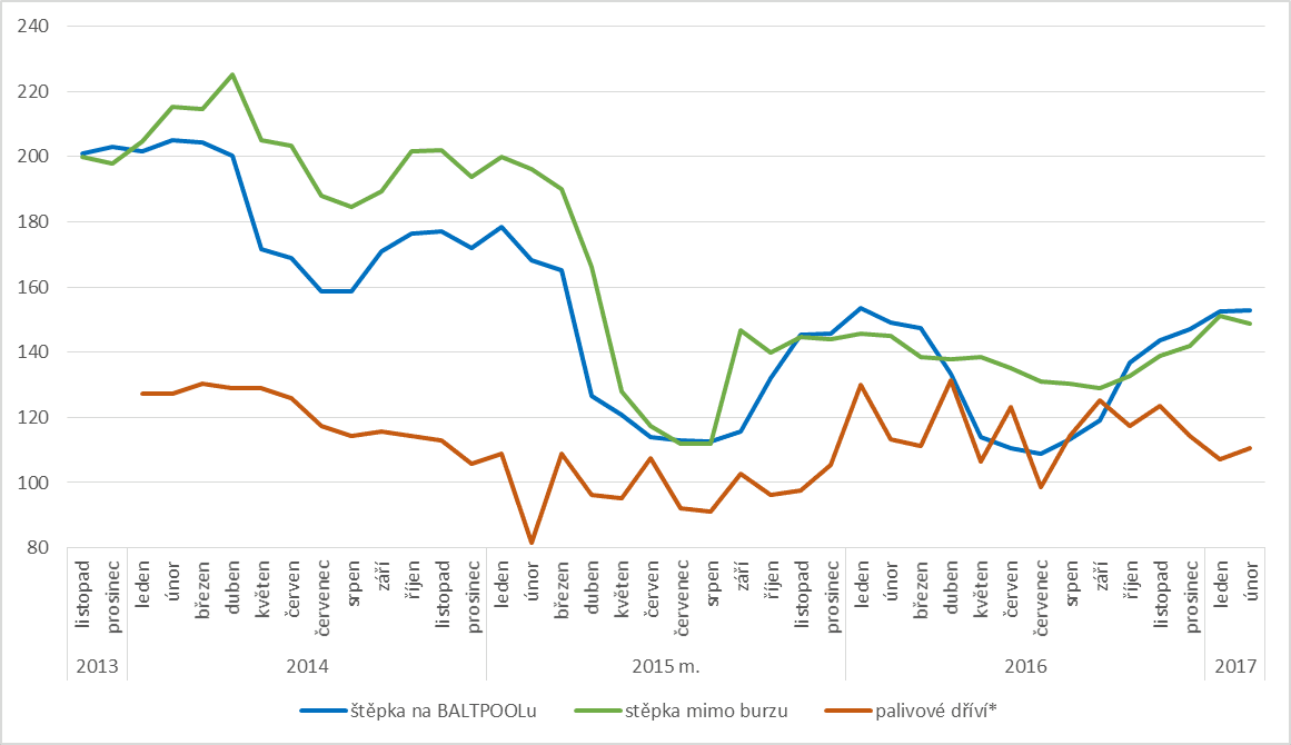 Nárůst burzovního obchodování také patrně držel ceny dřevní biomasy v posledních měsících na stabilní úrovni, ačkoli cena základní suroviny rostla (viz graf). To by mohlo být důkazem vyšší efektivity burzovního obchodování. Čeho ale burza dosáhla nepochybně, je narovnání cen v rámci Litvy. Ještě v topné sezóně 2012-2013 se ceny ve dvou sousedních okresech mohly lišit až o třetinu. To je nyní vyloučené.