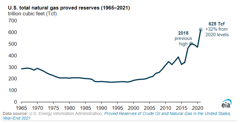 Právě vysoká cena zemního plynu v USA v roce 2021 byla významným faktorem, který přispěl ke zvýšení prokázaných zásob v tomto roce. Cena byla téměř dvojnásobná ve srovnání s cenou v roce 2020, který byl významně poznamenaný pandemií koronaviru.