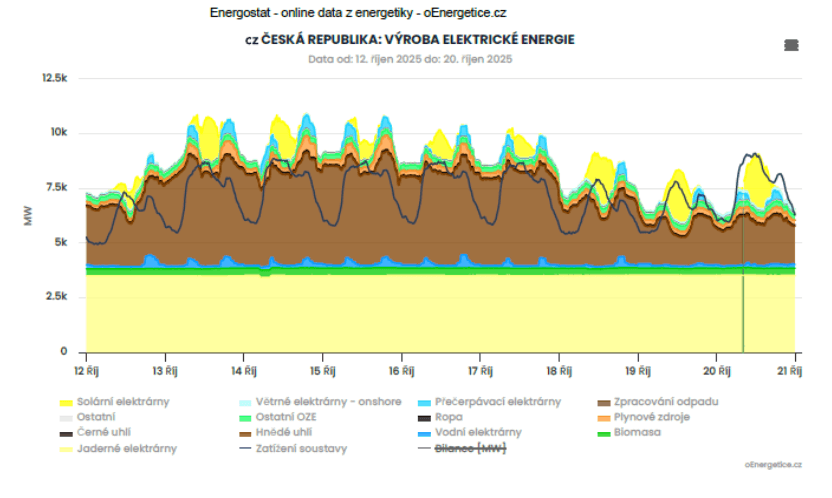 Podívejme se, jaká byla výroba a spotřeba elektřiny v minulém roce. Jde o předběžná data. V roce 2025 byla hrubá výroba elektřiny 76 TWh, čistá výroba elektřiny byla 71,4 TWh, čistá spotřeba elektřiny byla 59,3 TWh. Rozdíl, který byl 12,1 TWh, se skládal z 3,8 TWh ztrát v síti, 0,9 TWh ztrát při práci přečerpávacích elektráren a čistého exportu 7,4 TWh. Uhelné elektrárny vyprodukovaly 23 TWh. V elektrárnách skupiny Sev.en se vyrobilo okolo 7 TWh elektřiny, tedy jen o trochu méně, než byl čistý export. Pokud by se podmínky v roce 2027 zhruba opakovaly, jen bez zmíněných tří elektráren, bylo by Česko z hlediska exportu a importu zhruba na čisté nule.