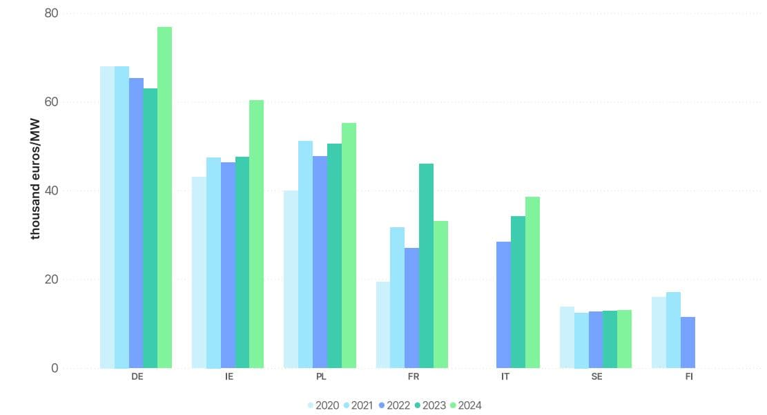 Uvedená hodnota představuje téměř dvojnásobek měrných nákladů na kapacitní mechanismy, které v posledních letech Německo vynakládá podle loňského reportu Agentury pro spolupráci energetických regulačních orgánů (ACER). Současně se jedná o hodnotu, která je o zhruba 50 % vyšší než výsledné ceny z kapacitních aukcí, které proběhly v roce 2022 v Polsku (87 000 eur/MW/rok) či Itálii (70 000 eur/MW/rok).
