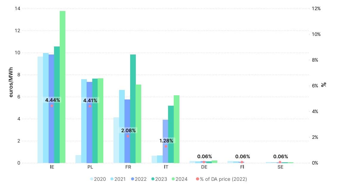 Často používaným ukazatelem při hodnocení nákladů na kapacitní mechanismy jsou také celkové náklady vztažené na MWh spotřeby elektřiny v dané zemi. V tomto případě by připravované opatření při předpokládaných nákladech kolem 3 miliard eur ročně a spotřebě elektřiny v Německu kolem 500 TWh/rok znamenalo příplatek v koncové ceně elektřiny ve výši 6 EUR/MWh. Pro srovnání, velkoobchodní cena elektřiny pro německý trh na rok 2025 se aktuálně obchoduje za necelých 95 EUR/MWh.