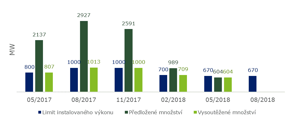 Vysoutěžený instalovaný výkon v aukcích pro onshore větrné elektrárny v Německu. Zdroj: BNetzA