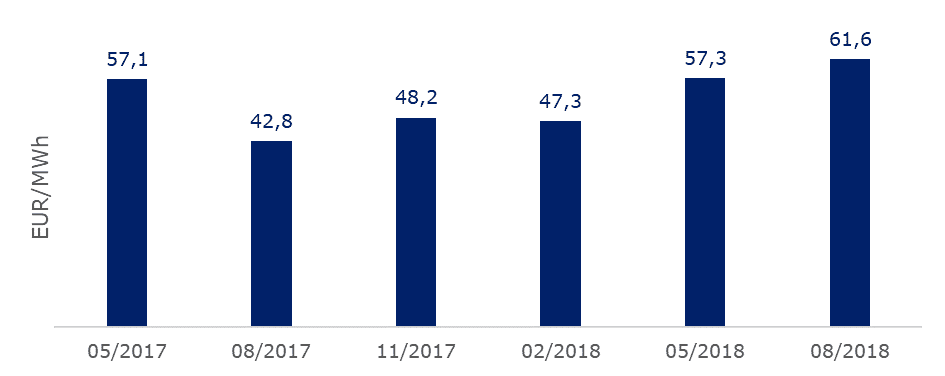 Vysoutěžený vážený průměr ceny v aukcích pro onshore větrné elektrárny v Německu. Zdroj: BNetzA