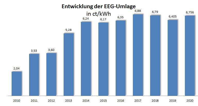 EEG přirážka ke každé spotřebované kWh letos přidá 6,756 eurocentů, to je více než cena samotné silové elektřiny, která aktuálně dosahuje hodnoty okolo 4 eurocentů/kWh. Podpora OZE se tak stala významnou nákladovou položkou v celkové ceně za elektřinu. Celkově náklady na financování EEG dosahují přibližně 25 miliard eur ročně.