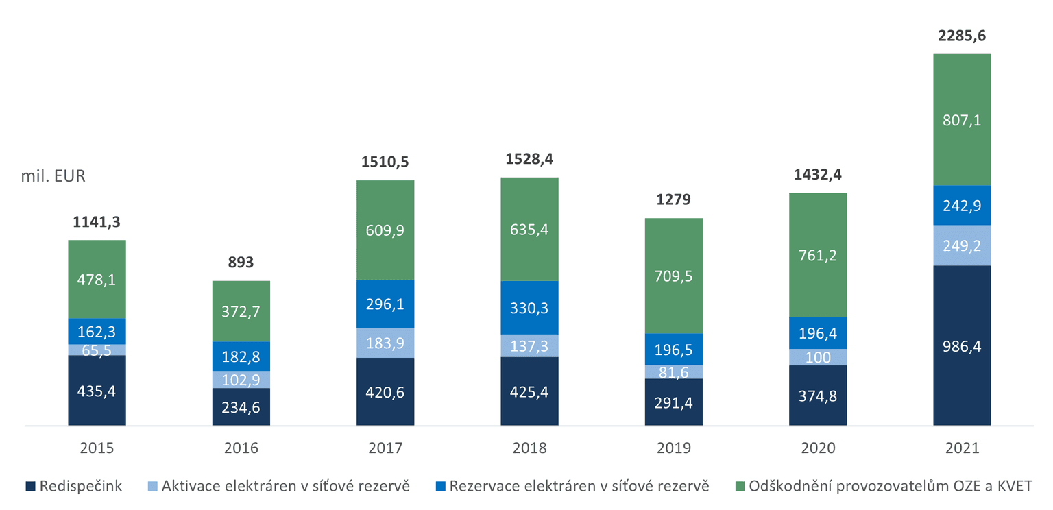 Předběžné náklady na redispečink, protiobchody a rezervaci a aktivaci elektráren v síťové rezervě v roce 2021 činily přibližně 1,5 miliardy EUR, což je více něž dovjnásobek výdajů za rok 2020 (637 milionů EUR).