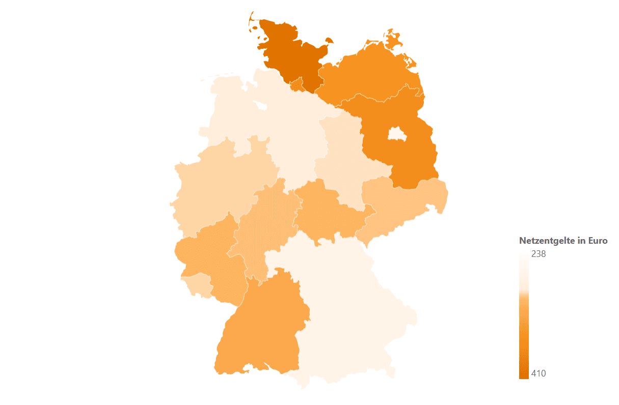 Zatímco severní spolkové země se kvůli jednotné německé obchodní zóně potýkají se stejnými velkoobchodními cenami elektřiny jako celé Německo, síťové poplatky jsou na severu Německa vyšší v porovnání se západem nebo například Bavorskem. To je dáno jednak nízkou hustotou zalidnění, ale i vyšším podílem OZE připojených na nižších napěťových hladinách. Odběr elektřiny z vyšších napěťových hladin se tím snižuje, a rostou tak náklady na sítě na jednotku spotřebované elektřiny.