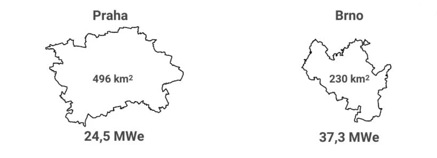 V Brně dominuje zmíněná elektrárna v Tuřanech, která je čtvrtým největším fotovoltaickým zdrojem v Česku. Celková čísla týkající se výkonu fotovoltaických elektráren v Praze a Brně jsou nicméně ve skutečnosti o trochu větší. Od roku 2016 totiž platí novela energetického zákona, která umožnila provozovat výrobnu elektřiny připojenou k soustavě do instalovaného výkonu deseti kilowattů bez licence. Martin Dvořák odhaduje, že se do statistik nedostalo pět až deset megawattů celkového instalovaného výkonu.