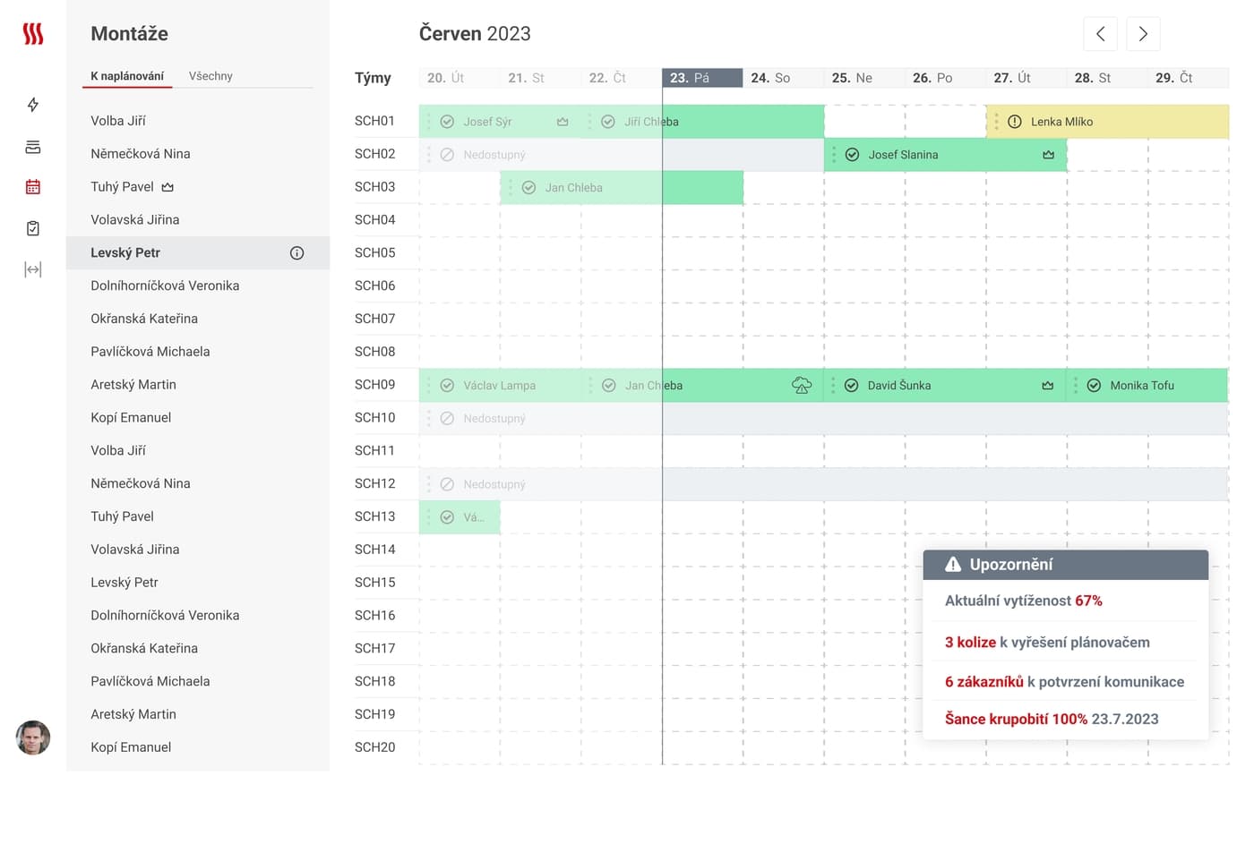 Společnost Schlieger v současné době instaluje přes tisíc zakázek měsíčně a zaměstnává více než sto instalačních čet. Jde tak o stovky lidí, které není jednoduché koordinovat. „Čím více lidí a zakázek máme, tím víc se zvyšuje pravděpodobnost vzniku lidské chyby při plánování. A to i z toho důvodu, že se čím dál častěji musíme vypořádávat se změnami preferencí a termínů ze strany zákazníků, které je třeba operativně řešit. Proto plánujeme v příštích měsících nasadit umělou inteligenci, aby nám pomohla optimalizovat produktivitu a v rámci harmonogramů bezchybně prokombinovala absence, přeplánování změn s dostupností vhodných profesí i vybavení,“ říká Němeček a pokračuje: „Za pomoci umělé inteligence budeme vyhodnocovat aktuální dlouhodobé i krátkodobé absence, optimální složení instalačních čet a spárování se zakázkami, tak aby byli naši montážníci maximálně vytížení a zároveň nedocházelo k termínovým kolizím.“