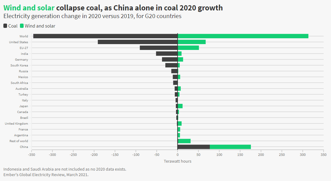 Think tank Ember , zaměřený na výzkum energetiky a klimatu, vydal zprávu s názvem Global Electricity Review 2021. Každoročně vydávaná zpráva se zaměřuje na trendy v elektroenergetice po celém světě a analyzuje data ze jednotlivých zemí.