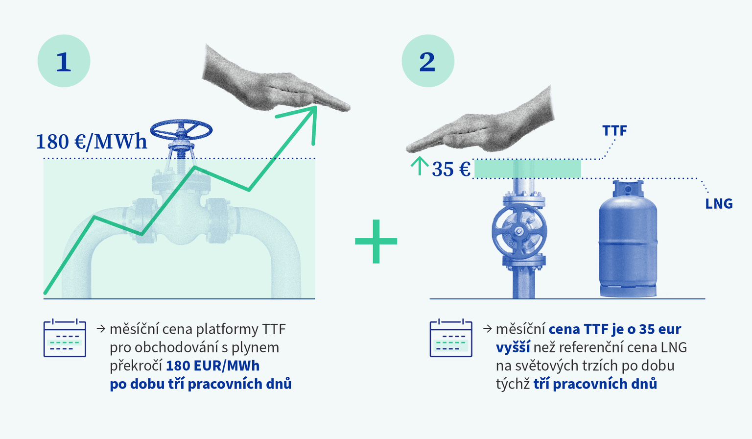 Strop cen plynu, takzvaný „mechanismus korekce trhu“, funguje od ledna 2023 a jeho cílem je ochránit průmysl a domácnosti před nadměrným nárůstem cen plynu a elektřiny po rekordně vysokých úrovních zaznamenaných v létě roku 2022, kdy ceny plynu překročily hranici 300 EUR za MWh.