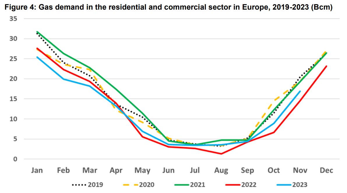 Spotřeba plynu v Evropské unii je totiž významně závislá na jeho spotřebě v sektoru domácností a služeb, kde se využívá primárně pro vytápění. Tato spotřeba činí až 40 % roční spotřeby plynu a výkyvy v průměrných teplotách jsou obvykle hlavním důvodem zvýšení nebo snížení celkové spotřeby. V kontextu Evropské unie se tak může roční spotřeba plynu v závislosti na průměrné zimní teplotě lišit o 20 až 25 miliard m3. Pro srovnání - celková spotřeba plynu v EU v roce 2022 byla cca 360 miliard m3.
