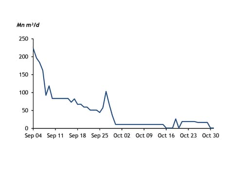 Toky by se mohly v nadcházejících dnech zvýšit s koncem plánované údržby. S přicházející topnou sezónou by objem odstavených těžebních kapacit mohl být pouze zlomkem oproti objemu, který je nedostupný nyní.