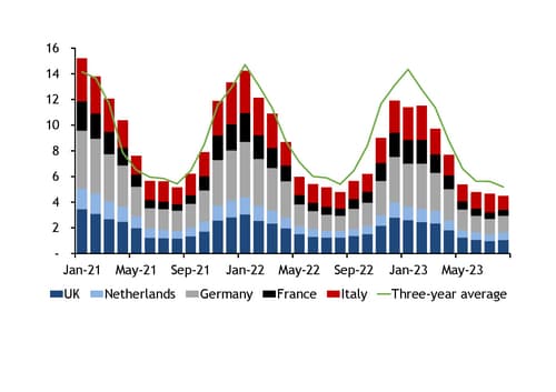 Že je spotřeba zemního plynu nadále nízká ukazují statistiky agentury Argus. Podle nich byla spotřeba pěti zemí s nejvyšší spotřebou zemního plynu (Spojené království, Nizozemsko, Německo, Francie, Itálie) dokonce nejnižší od srpna roku 2016.