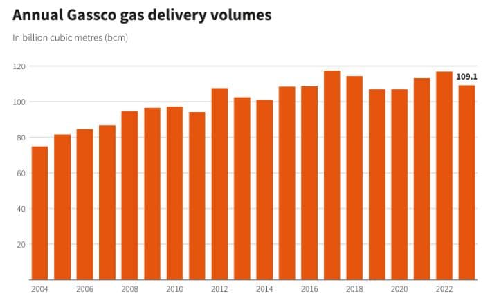 Dodávky do Francie proti tomu klesly v loňském roce o 22,5 % na 13,8 mld. m3. Klesly i dodávky do Belgie (o 3,8 % na 15 mld. m3) a do Spojeného království (o 13,6 % na 24,1 mld. m3).