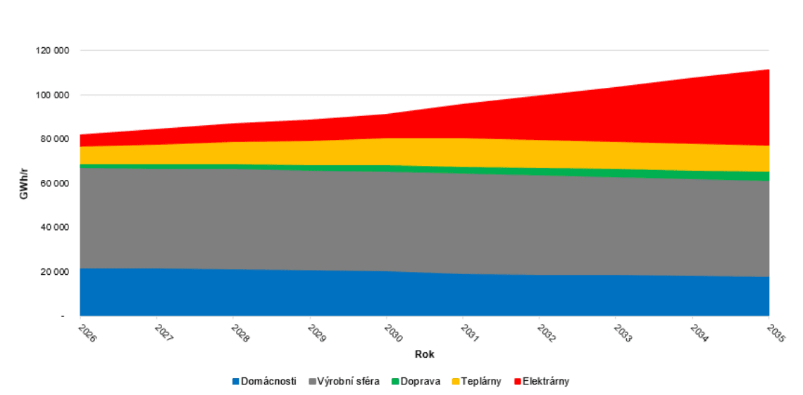 Spotřeba zemního plynu v České republice by podle NET4GAS měla do roku 2035 vzrůst na 110 TWh, což představuje nárůst o téměř 50 % ve srovnání s rokem 2024. Jak nicméně NET4GAS uvádí ve zveřejněném dokumentu, spotřeba zemního plynu v ČR v období 2022 až 2024 výrazně poklesla na jedné straně v důsledku covidové pandemie a následně kvůli energetické krizi. V letech 2016 až 2020 se spotřeba pohybovala kolem hranice 90 TWh a v roce 2021 dokonce přesáhla 100 TWh.