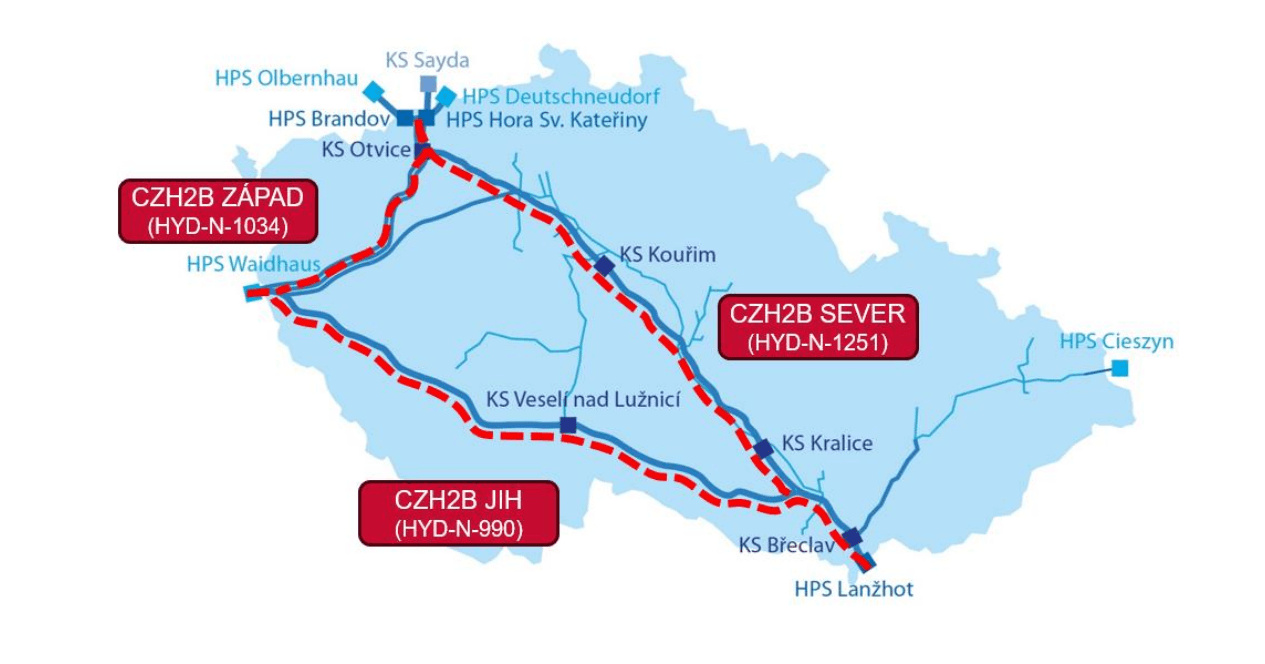 Naplno běží také přípravy dedikované přepravní infrastruktury pro vodík v České republice, kdy se jedná o projekty ZÁPAD, SEVER a JIH.