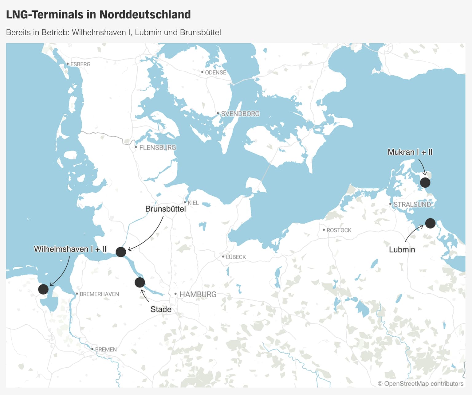 Před zimou by měly být v Německu uvedeny do provozu další dva plovoucí terminály na dovoz zkapalněného zemního plynu (LNG). Předpokládané datum uvedení do provozu, které je již nyní oproti původním plánům zpožděno o několik měsíců, společnost neupřesnila. Na základě dat o využití současných německých LNG terminálů vyvstává otázka, zda Německo vůbec další terminály potřebuje.