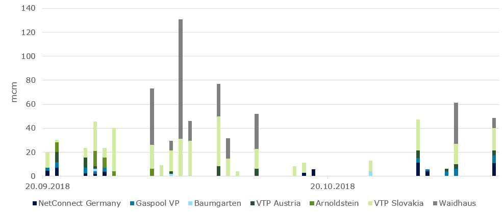 V aukcích je nabízena fyzická dodávka plynu do několika virtuálních obchodních míst (VTP) v Evropě. Jedná se o německé huby NCG a Gaspool, slovenské VTP, rakouský Baumgarten a jeho alternativní rakouské dodací body a propojovací místo Waidhaus na hranici mezi Českou republikou a Německem.
